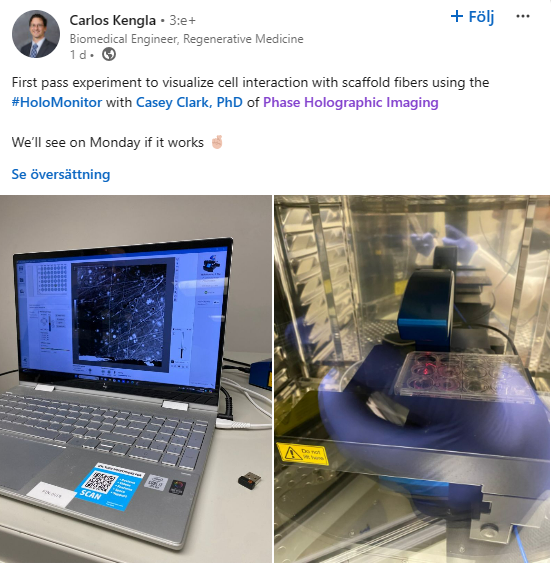 Jag gissar att man nu försöker se (mäta) hur väl celler fäster på dessa fibrer. Något som kan vara oerhört viktigt i framtagandet av ännu bättre fibrer och utvecklingen av organbygge. /